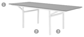 Table Top: Linoleum black or anthracite, edge band: ash untreated